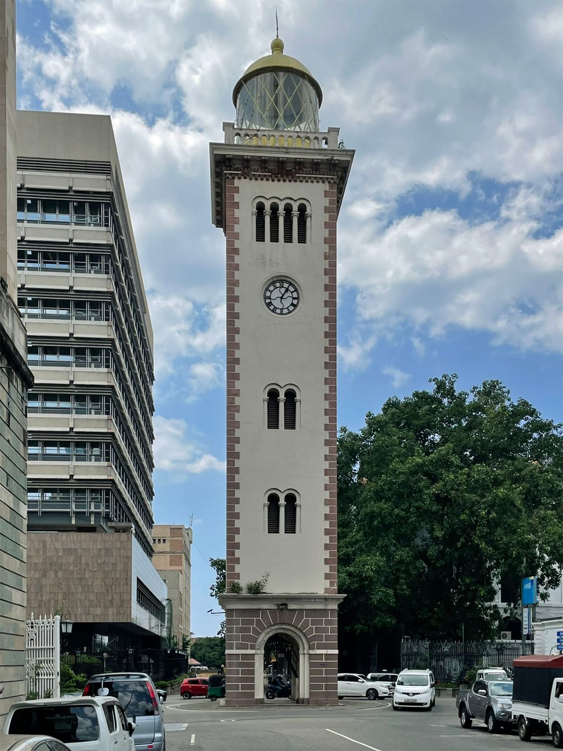 Der 29m hohe Turm wurde in den Jahren 1856 und 1857 im Zentrum des Fort District an der Kreuzung Chatham Street und der früheren Queens Road (heute Janadhipathi Mawatha) als für die damalige Zeit typisch britischer Uhrturm errichtet. Entworfen wurde er von Emily Elizabeth Ward, der Ehefrau des damaligen Governors Sir Henry George Ward. Die Einweihung erfolgte am 25. Februar 1857. Seinerzeit handelte es sich um das höchste Bauwerk der Stadt. Das damalige Uhrwerk wurde bereits im Jahr 1814 gebaut und stammte vom selben britischen Uhrmacher, der später im Jahr 1852 auch die Uhr des Londoner Westminster Palace (Big Ben) entwarf. Der Uhrturm sollte ursprünglich bereits zu Beginn der 1810er Jahre gebaut werden. Aufgrund der seinerzeitigen schwierigen wirtschaftlichen Situation verzögerte sich der Bau aber bis in die 1850er Jahre.