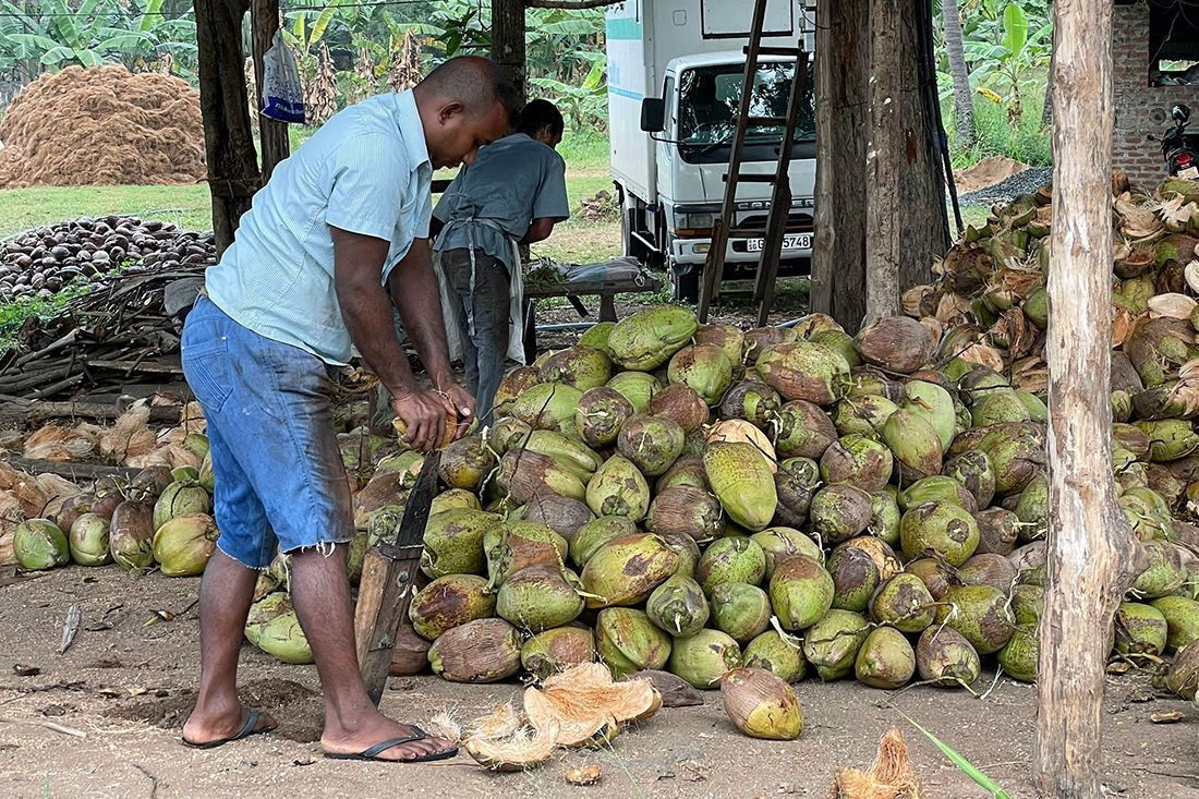 Um 06:00 holt uns unser Fahrer an der Rezeption des Club Hotel Dolphin ab und wir fahren -vorbei an unzähligen Tempeln, Kokosnuss-/Ananasplantagen und Reisfeldern- nach Sigiriya.