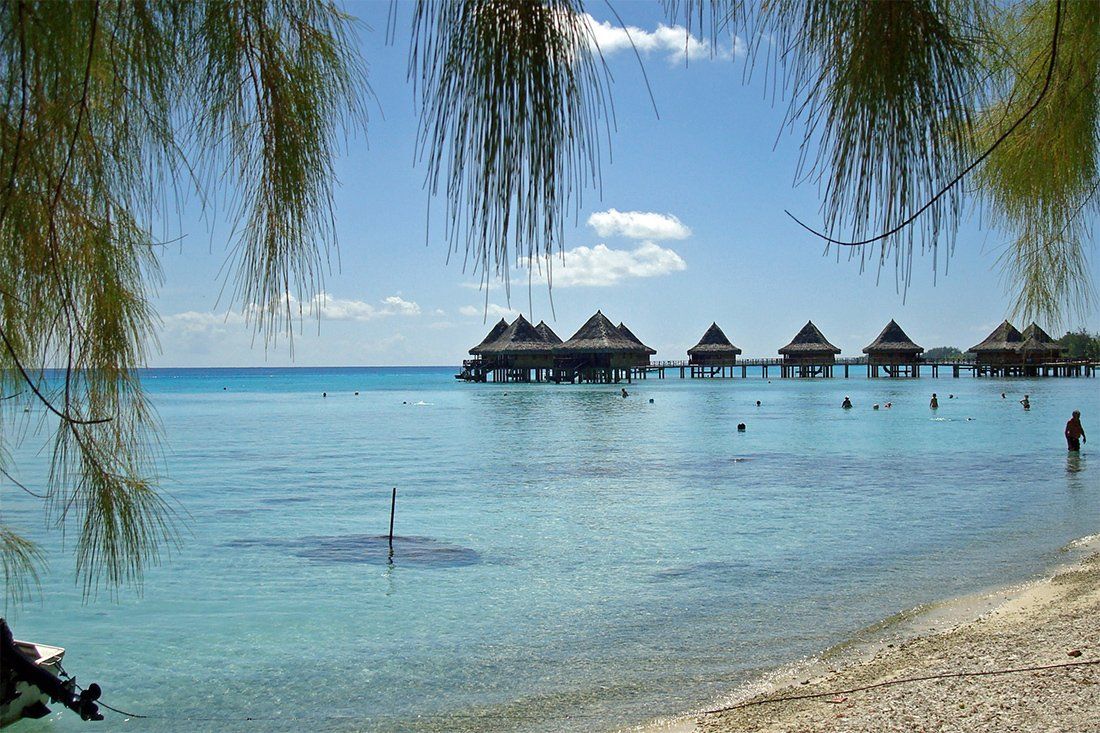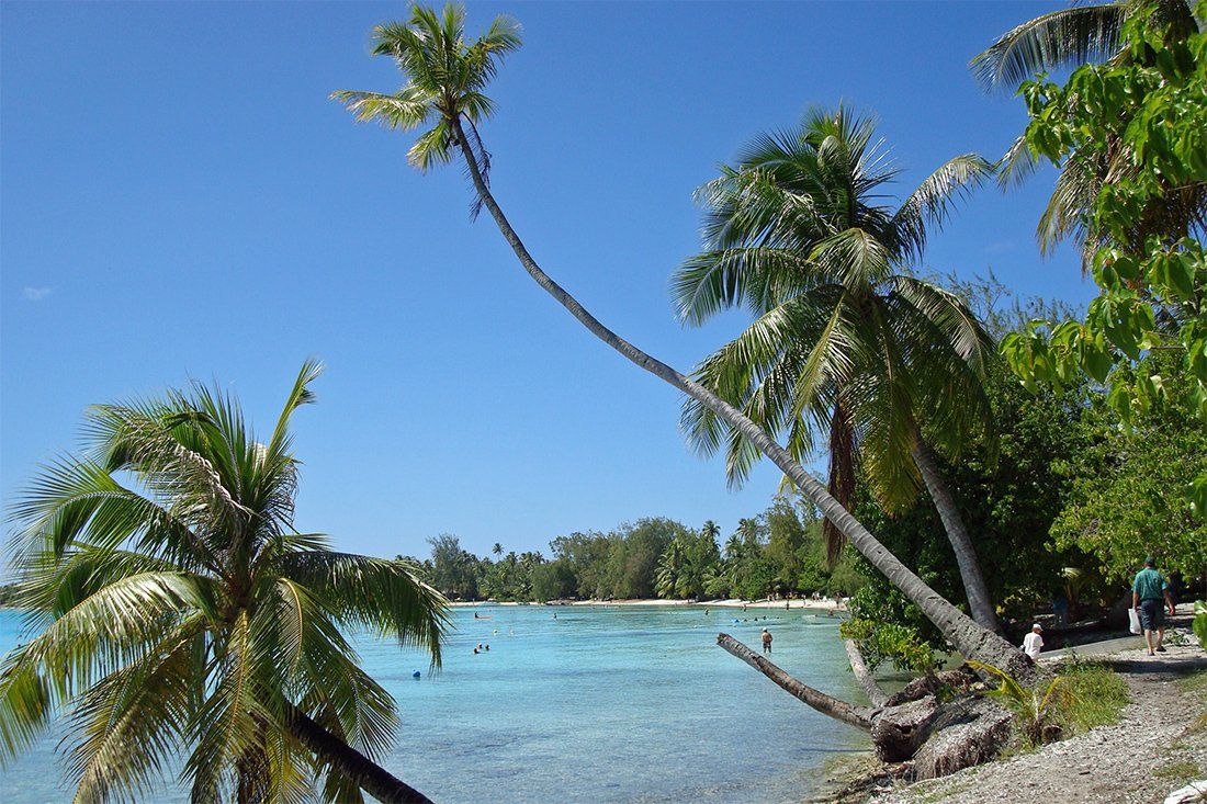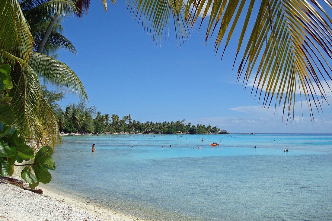 Unweit des Hotel Kia Ora Resort & Spa lassen wir uns am Strand aus spitzem Korallensand nieder. Von hier aus haben wir einen schönen Blick in die Lagune und auf unsere MAXIM GORKI.