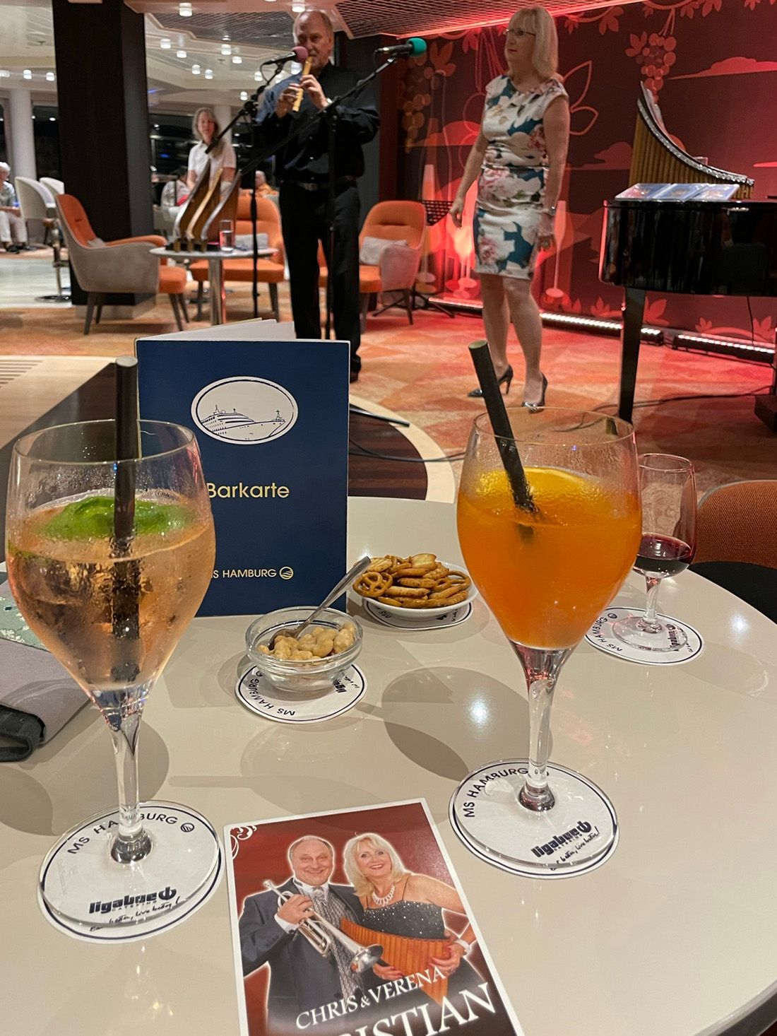 Vor dem Abendessen laden Chris & Verena Christian alias Duo Brillante um 18:30 Uhr mit Panflöten- und Trompetenklängen zum Aperitif in die Weinstube ein.