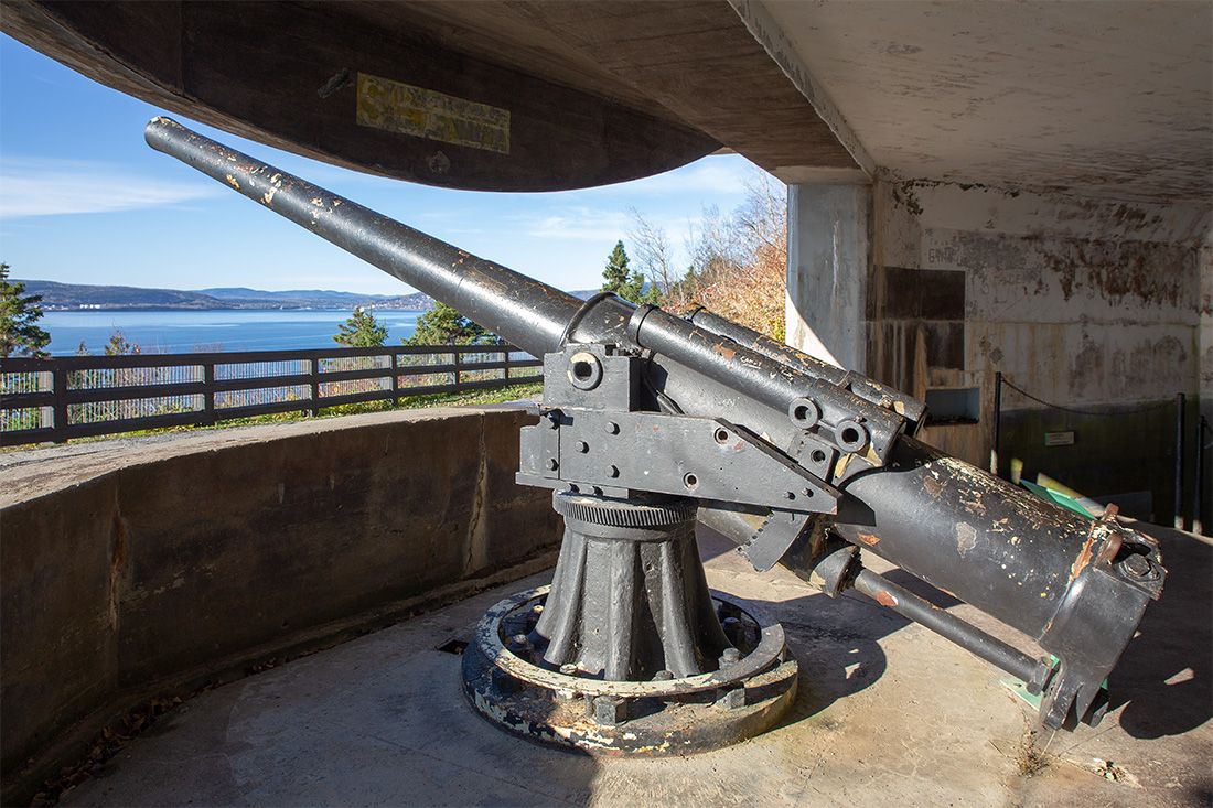 Die Region lebt zwar vornehmlich vom Tourismus, jedoch steht nur eine begrenzte Anzahl von Reisebussen zur Verfügung. Und somit werden bei größeren Touristengruppen durchaus auch reguläre Schulbusse eingesetzt. Mit einem solchen werden die Gäste heute unterwegs sein. Die Fahrt führt zunächst im Uhrzeigersinn um die Bucht von Gaspé zur Südküste der Halbinsel Gaspésie. Der erste Stopp ist am Fort Peninsula (frz. Fort Péninsule), einer Stellung aus dem zweiten Weltkrieg, die den damaligen Marinestützpunkt Fort Ramsay der kanadischen Marine gegen mögliche Angriffe feindlicher Truppen schützen sollte.