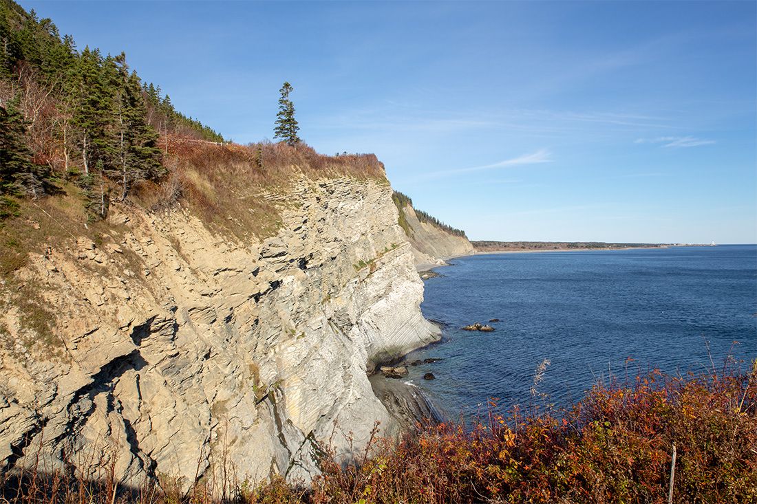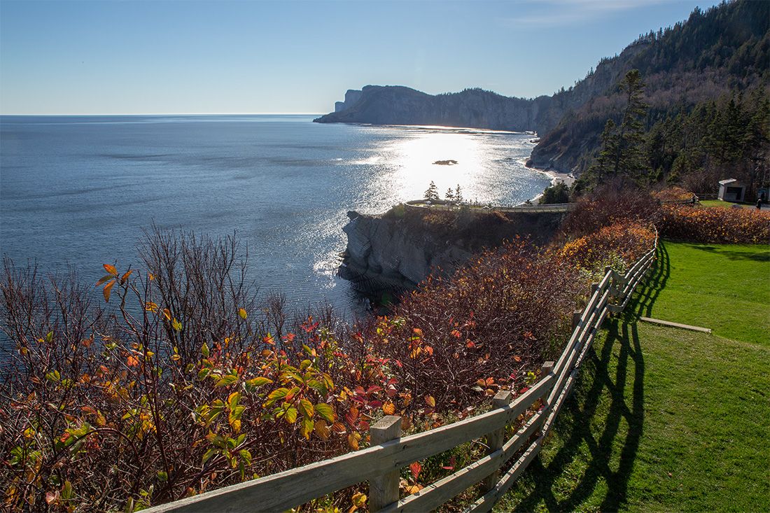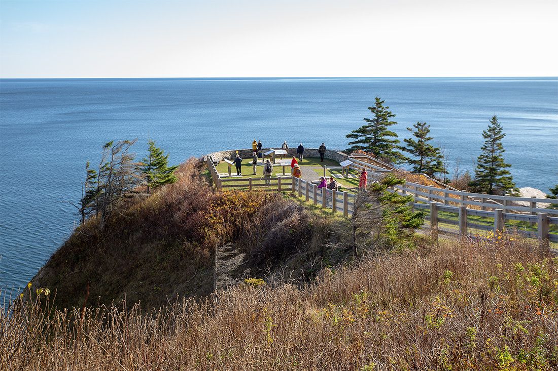 Nach der Besichtigung der noch vorhandenen Schützengräben, Bunker und Geschütze geht die Fahrt weiter durch den Forillon Nationalpark. Der nächste Stopp ist am Cap Bon-Ami. Hier befinden wir uns nun an der Ostküste der Halbinsel Gaspésie und haben einen grandiosen Ausblick auf das Meer (bzw. den Sankt-Lorenz-Golf). Zu bestimmten Jahreszeiten tummeln sich hier zahlreiche Walarten (bis hin zum größten Vertreter dieser Gattung, dem Blauwal), die dann auch von Land aus gut zu beobachten sind.