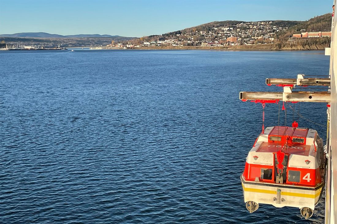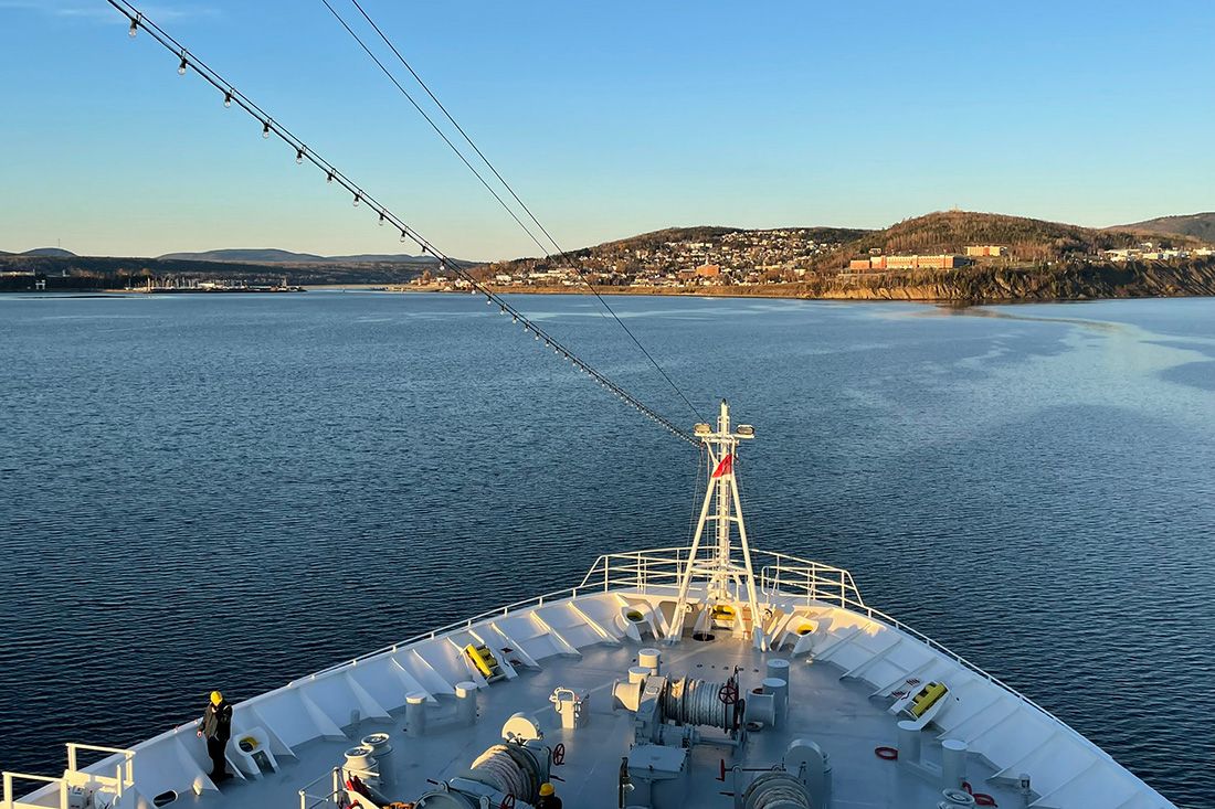 Pünktlich um 08:00 Uhr wird auf Reede vor Gaspé der Anker fallengelassen. Seit dem Verlassen der Pier von Québec City hat MS HAMBURG 415 Seemeilen bzw. 769 Kilometer zurückgelegt.