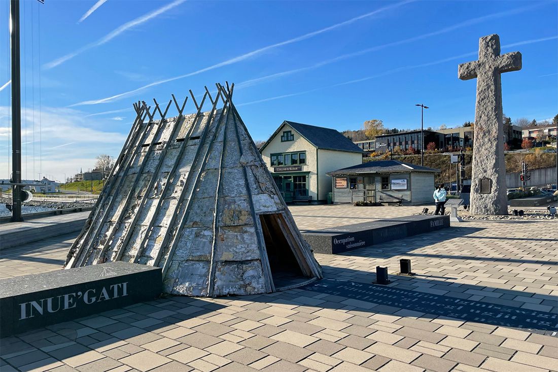 Hier schauen wir uns zunächst einmal die Gedenkstätte Berceau du Canada („Der Geburtsort Kanadas“) an. Ein Nachbau eines alten Mi´kmaq-Zeltes erinnert an die Ureinwohner, während das große Kreuz an den französischen Entdecker Jaques Cartier erinnert. Letzterer ging hier im Jahr 1534 an Land, errichtete ein Holzkreuz und gründete somit den heutigen Ort Gaspé. Damit begann die Besiedlung der Gegend durch die Franzosen.
