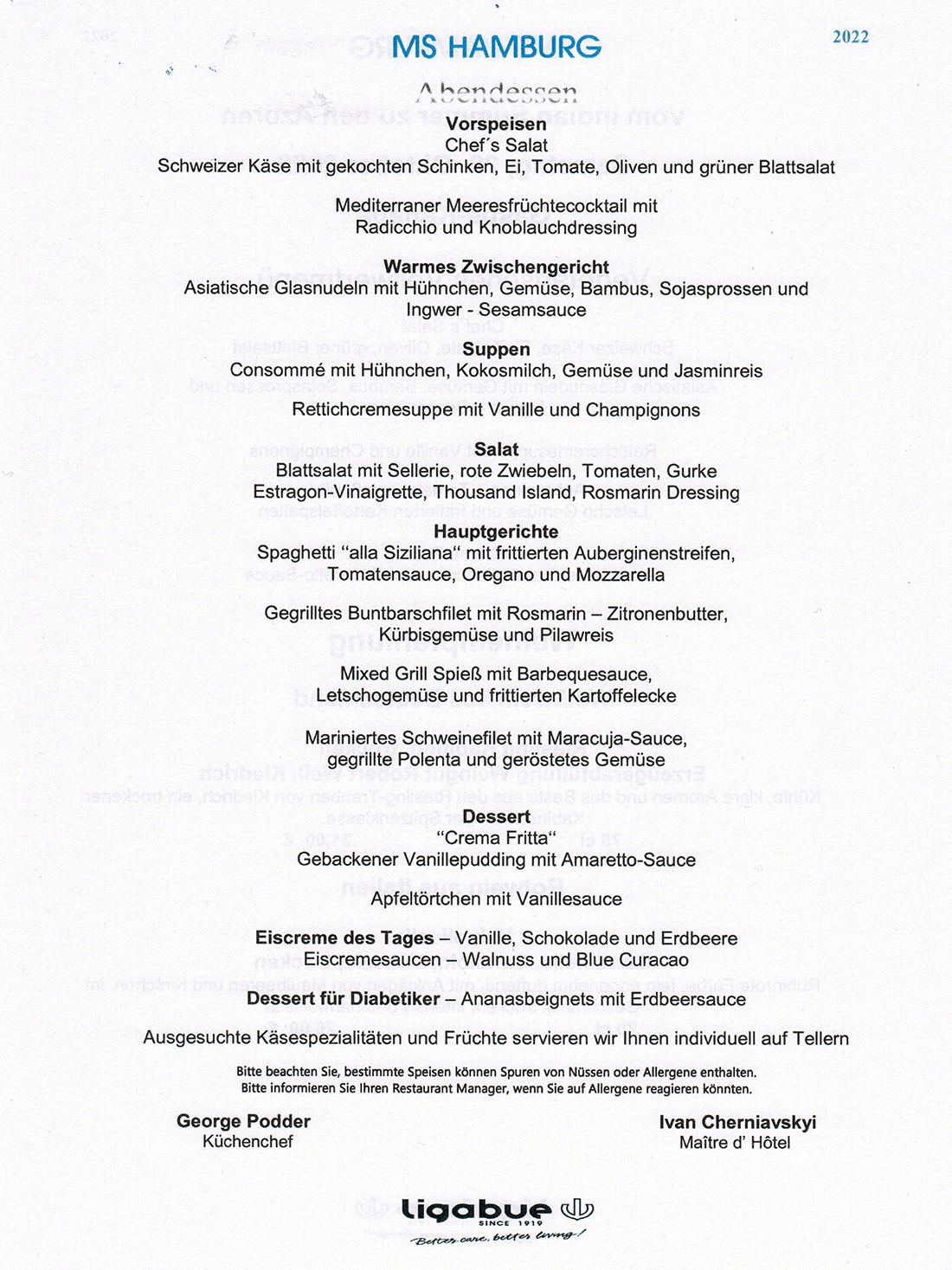 Zwischen 22:30 und 23:15 Uhr werden schließlich noch zum Tagesausklang in allen Bars Fleischröllchen als Late-Night-Snack gereicht. Und so neigt sich auch der dritte Tag dieses Reiseabschnittes dem Ende entgegen.