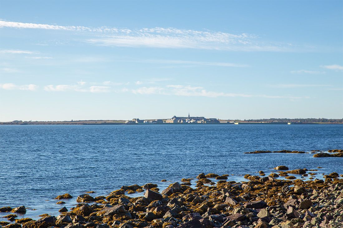 Der erste Stopp des heutigen Ausfluges ist an der Royal Battery National Historic Site. Hierbei handelt es sich um eine ehemalige Gefechtsstellung, die potentielle Angriffe vom Meer aus bereits vor dem Erreichen der Bucht und der eigentlichen Festungsstadt abwehren sollte. Von hier aus haben die Gäste einen schönen Blick auf die wiederaufgebaute Festungsstadt Louisbourg im Süden und die heutige Stadt Louisbourg im Norden. Louisbourg ist damit eine der ganz wenigen heute existierenden Städte, die nicht auf dem Areal der früheren kolonialen Siedlung, sondern an einer ganz anderen Stelle aufgebaut wurde.
